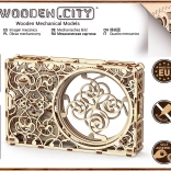 Bemutatjuk a WOODEN CITY egyedi mechanikus képét, amely kidolgozottságával és funkcionalitásával varázsol el. Ez a fa 3D puzzle egyesíti a szépséget, a tudományt és a művészetet. Összeállítás után egy speciális kulcsnak köszönhetően életre kel, és megmutatja a fogaskerekek mozgását, amelyek tánchoz hasonlóan, matematikai számítások szerint harmonikusan mozognak.