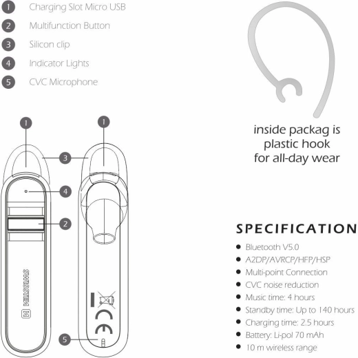 A SWISSTEN CALLER fülhallgató mindössze 7 gramm, és akár 4 óra beszélgetési időt biztosít.
