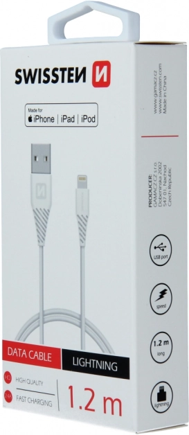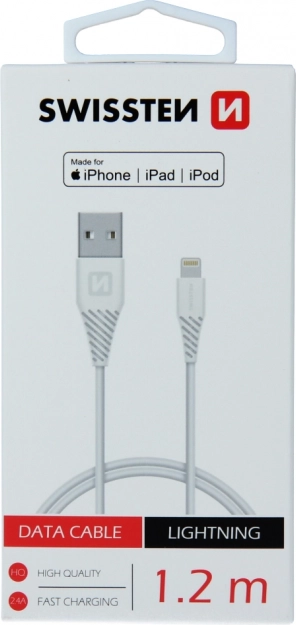 USB/Lightning MFI kábel/zsinór a Swissten-től, 1,2 m - fehér