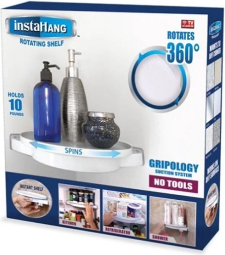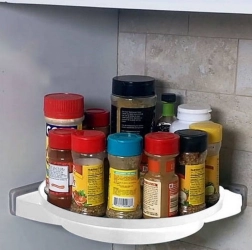 A forgó sarokpolc lehetővé teszi, hogy könnyedén helyet takarítson meg a lakás bármely sarkában. Elhelyezheti a szekrényben a fűszerek rendszerezéséhez, vagy a fürdőszobában a kozmetikumok, sminkkiegészítők, piperecikkek és fürdőszobai kiegészítők tárolására. Segít, hogy a szükséges dolgok mindig kéznél legyenek.