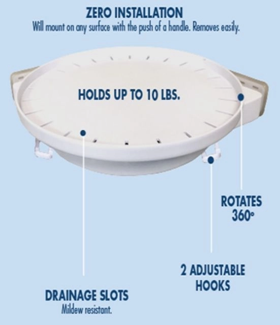 Akasztókkal rendelkezik, amelyekre felakaszthatja a törölközőket, mosdókesztyűt, fürdőszivacsot stb.