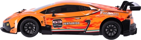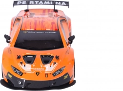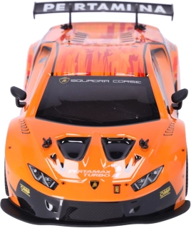 Ez a részletesen kidolgozott RC modell valósághű megjelenésével, hivatalos licencével és kiváló menettulajdonságaival nyűgöz le. A masszív felépítés és a precízen kidolgozott karosszéria hűen idézi a HURACÁN GT3 versenygépet.