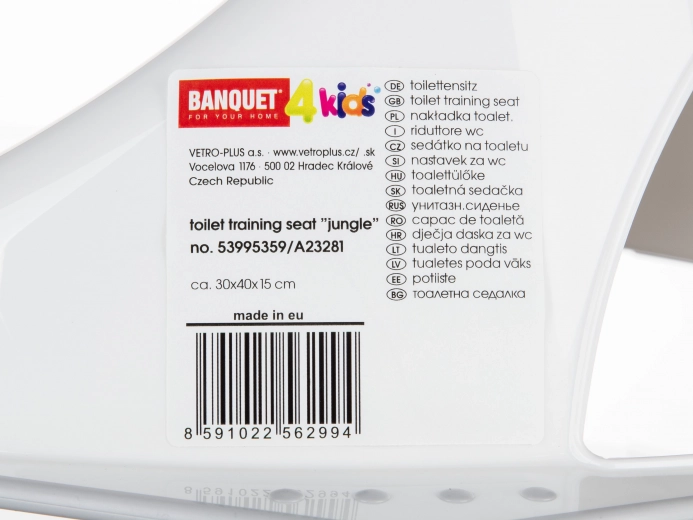 Könnyítse meg a szobatisztaságra szoktatást a BANQUET Jungle gyerek WC szűkítővel. A kicsinyített ülőkeforma és a csúszásgátló elemek biztos illeszkedést adnak a legtöbb WC-n, és megakadályozzák a nem kívánt elmozdulást. A tartós, mégis kellemes tapintású műanyag könnyen tisztán tartható.