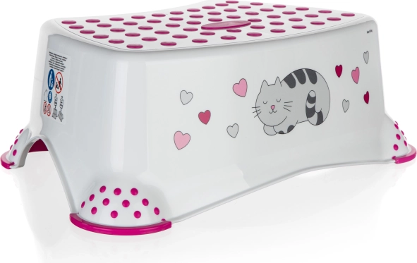 Adjon nagyobb önállóságot a gyerekeknek a fürdőszobában és a konyhában is. A cicás mintájú gyermek fellépő biztonságos plusz lépést kínál, amikor magasabban kell elérni valamit. A felső felület csúszásgátló pontjai és a lábak gumis végei minimalizálják az elcsúszás kockázatát.