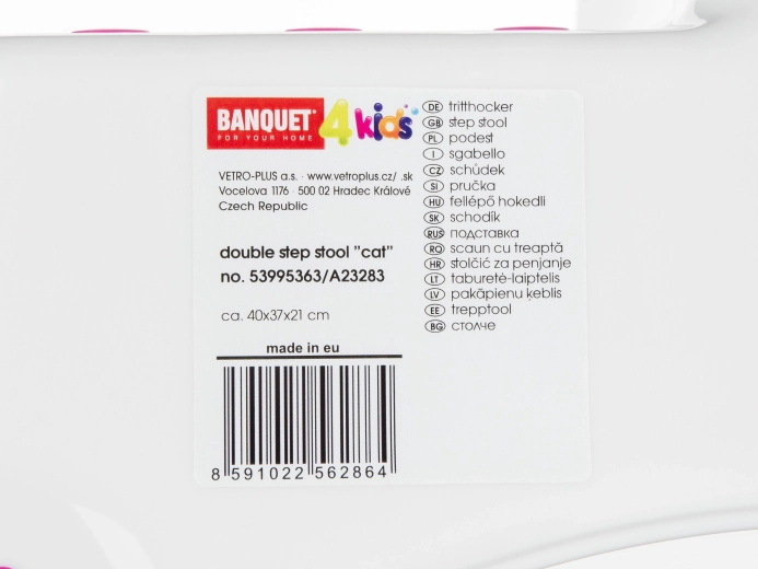 A kompakt 40,5 × 37 × 21 cm-es méreteknek köszönhetően könnyedén elfér a mosdónál vagy a WC-nél, kis súlya megkönnyíti a gyerekek számára a mozgatást, a sima műanyag felület pedig gyorsan és egyszerűen tisztán tartható. Az univerzális fehér szín vidám grafikával bármelyik fürdőszobába vagy gyerekszobába illik.
