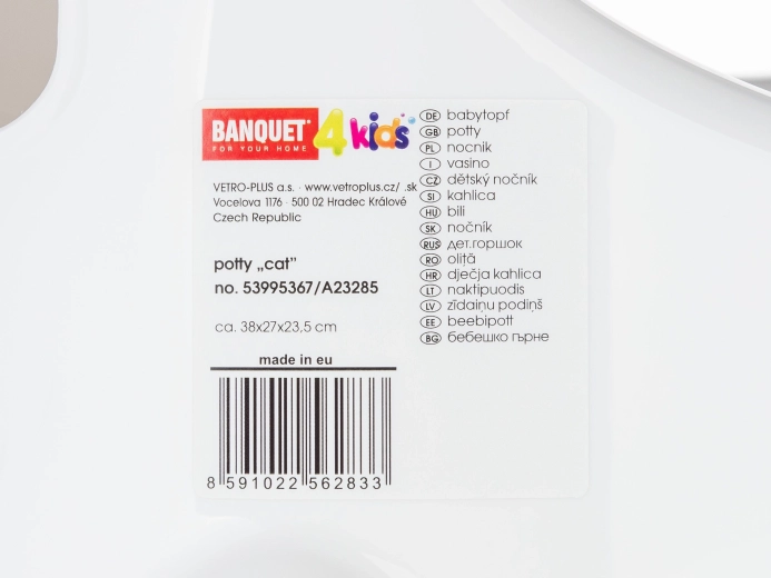 A BANQUET márkájú, cica mintás gyerek bili maximális stabilitást kínál a csúszásgátló lábaknak köszönhetően, anatómiai kialakítással és magas háttámlával a kényelmes ülésért, valamint könnyű tisztítással a sima felületnek hála. A megemelt középrész segít megakadályozni a kifröccsenést.