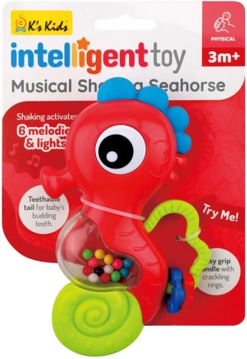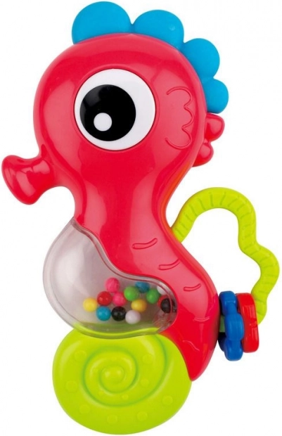 A tengeri csikó formájú zenei csörgő puha sörénnyel rengeteg szórakozást nyújt a babának, és ideális a fogzás időszakában. A tengeri csikó pocakja színes gyöngyöket tartalmaz, így a játék megrázásakor 6 hangot hallhatsz!