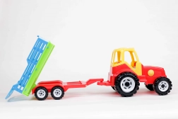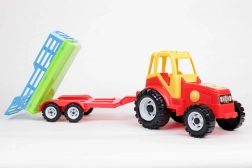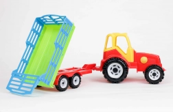 „Farmer” traktor két tengelyes pótkocsival. A pótkocsi a széna szállítására használt utánfutók mintájára készült, hátul billenthető. Nagy, sík felülettel rendelkezik, amelyen további játékok, például állatfigurák is szállíthatók.