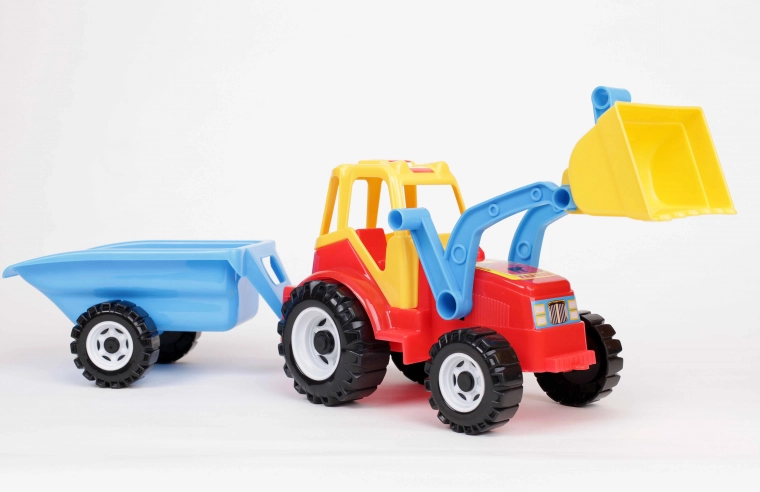 A traktor minőségi műanyagból, eredeti, egészségre ártalmatlan, nehézfém-vegyületektől mentes színezékekkel készül, így ideális gyermekkezekbe és a mindennapos játékhoz. Robusztus kerekek birkóznak meg a különféle felületekkel, a működő kanál pedig támogatja a kreatív játékot a homokozóban és otthon.