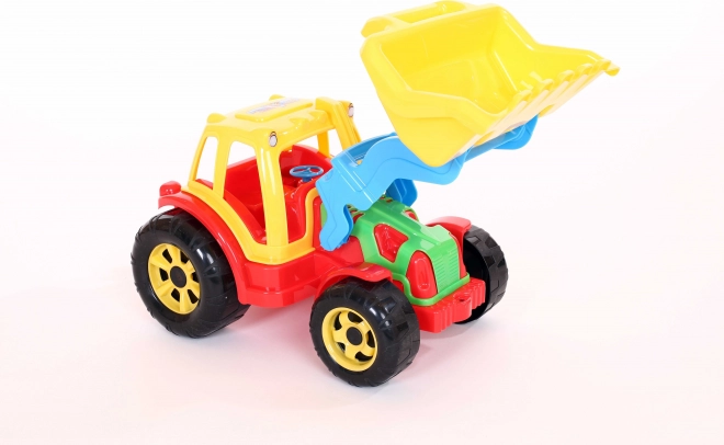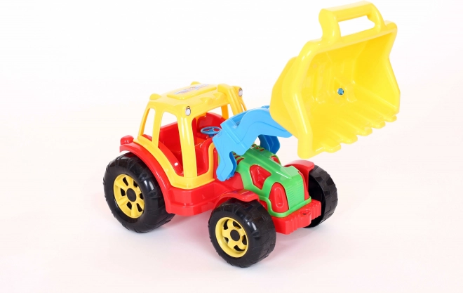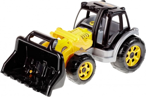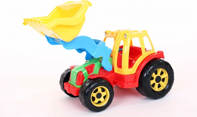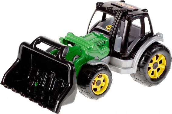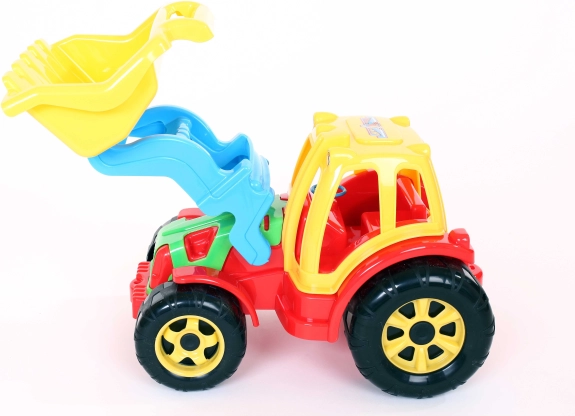 A rakodóval felszerelt traktor lehetőséget kínál a gyerekeknek, hogy megvalósítsák építési álmaikat a nagy elülső rakodó kar segítségével, amely ideális homok vagy más apró részecskék felszedésére. A játék kiegészítője a kormánykerék és a vezetői kabin tetején elhelyezkedő lámpák, amelyek hozzájárulnak a valósághű élményhez.
