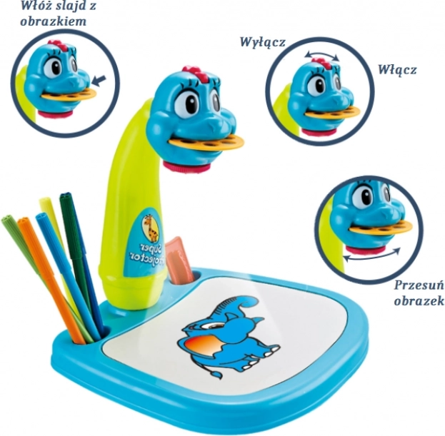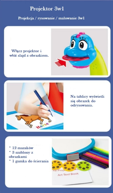 Multifunkciós projektor / rajztanító vetítő – kék dinoszaurusz