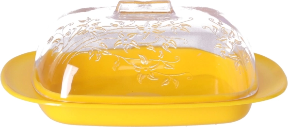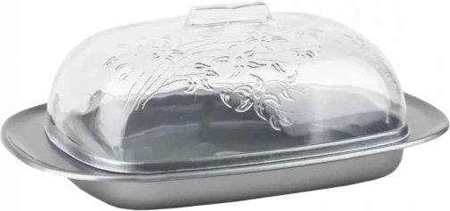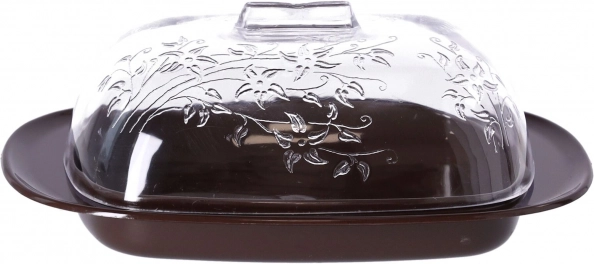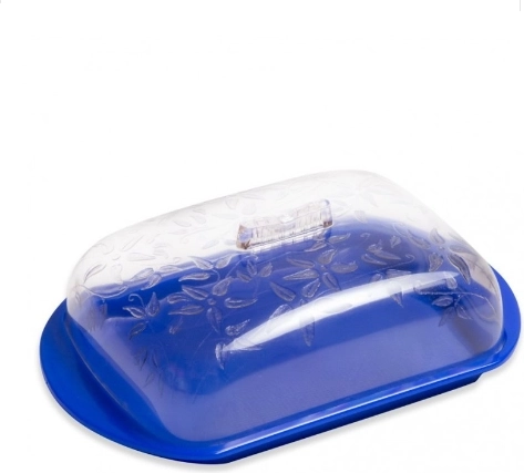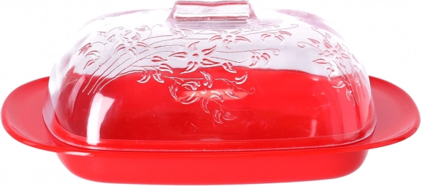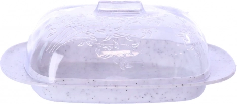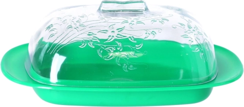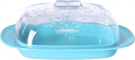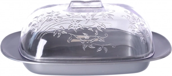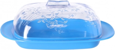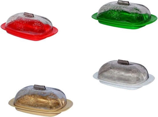 Ovális vajtartó – színkeverékOvális vajtartó minőségi anyagból, átlátszó tetővel, finom virágmintával. Nagyon praktikus, ideális a konyhájába.Specifikációk: