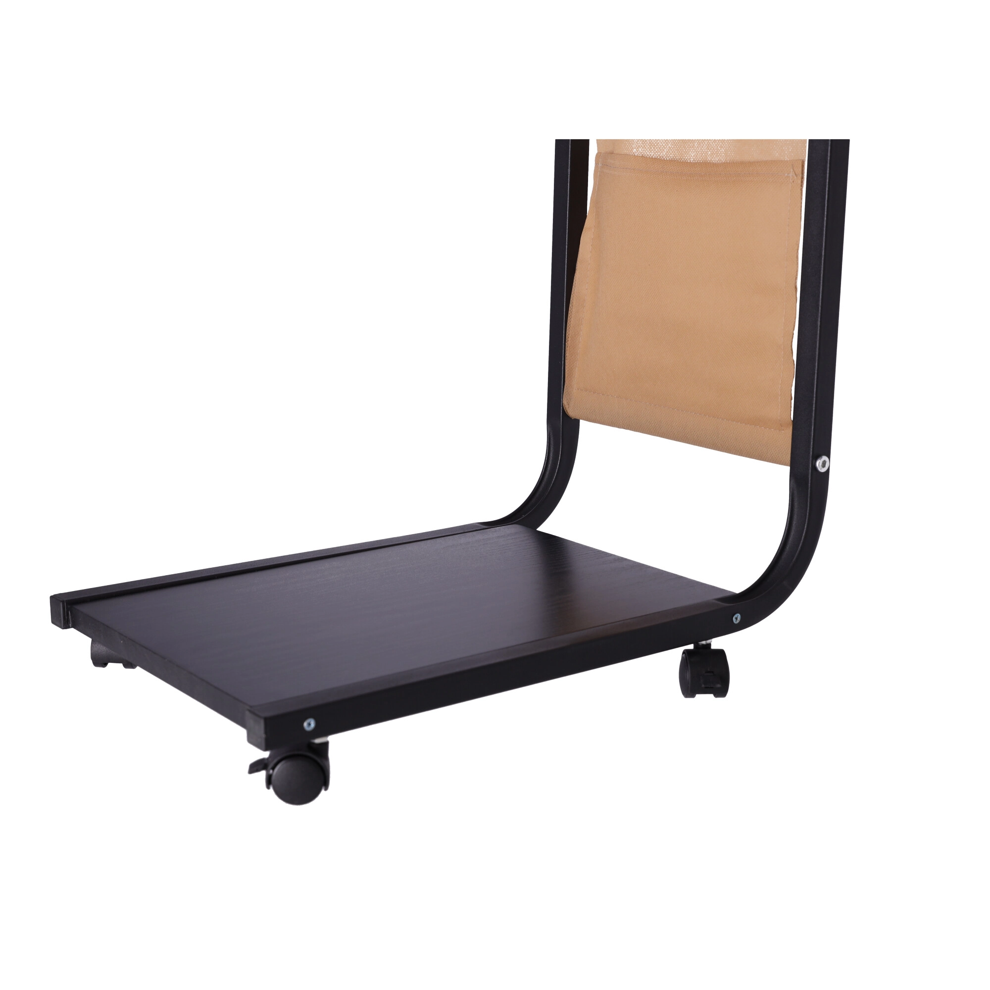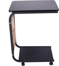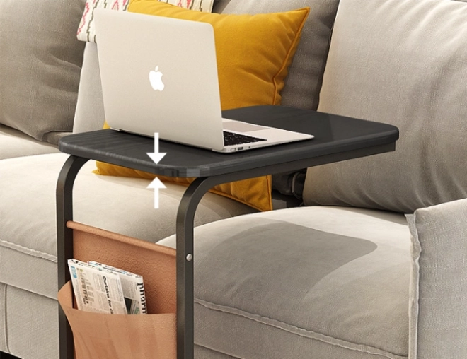 Praktikus, univerzális fekete, mobil asztal, amely egyszerre szolgálhat kanapé melletti asztalként és laptopasztalként. Keskeny talpának köszönhetően könnyen betolható az ágy vagy a kanapé alá, így a kávé, a távirányító és a magazin mindig kéznél van. Négy forgó kerék gondoskodik a kényelmes mozgatásról, belül pedig tágas tárolózsebet talál.