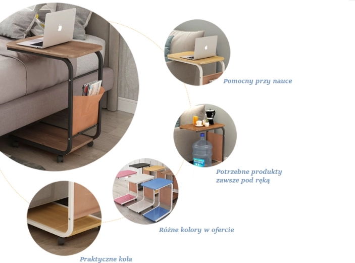 A nagyon praktikus lerakóasztal úgy lett megtervezve, hogy az alsó részét részben az ágy vagy a kanapé alá csúsztathatja, így kényelmesen használhatja a hasznos asztallapot. Az újság, a távirányító vagy a kedvenc kávé mindig kéznél lesz. A talpon lévő négy kerék gyors és kényelmes áthelyezést tesz lehetővé.
