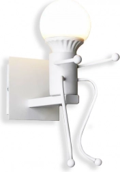 A lámpatest egy kis figurára emlékeztet, az izzóval mint „fejjel” – dekoratív elem, amely kellemes hangulatot teremt és egyedi akcentust ad a falnak.
