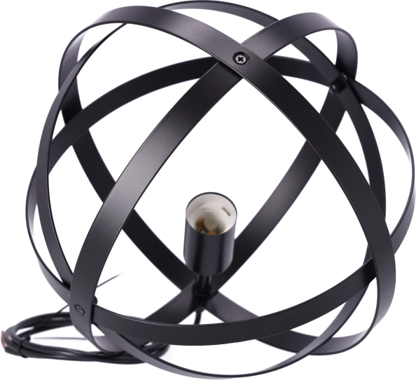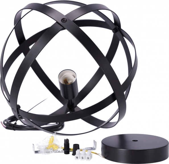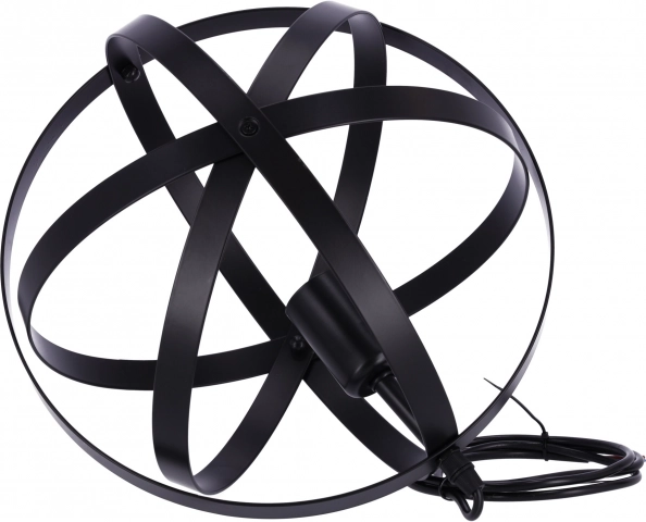 A gömb alakú szerkezet összefont fém szalagokkal ad geometriai és eredeti megjelenést a lámpának.
