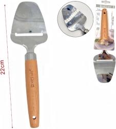 A szeletelő lehetővé teszi, hogy a sajtot egyenletes darabokra vágja. Nélkülözhetetlen eszköz minden konyhában. Praktikus és funkcionális termék, amely nélkül sok tevékenység nehezebb lenne. A kés éles pengével rendelkezik, amely mindenféle sajttal megbirkózik. A kés biztonságos és praktikus. A szeletelő rozsdamentes acélból készült, a nyél pedig fából van.
