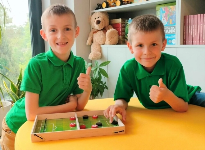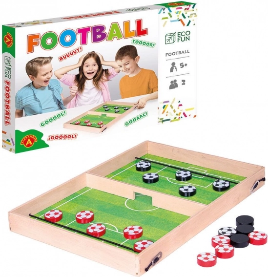 A Football asztali játék a futballmeccs hangulatát hozza egyenesen az asztalodra. A cél, hogy minél gyorsabban átlődd a saját korongjaidat az elasztikus szalag segítségével a középső nyíláson át az ellenfél térfelére. A játék intuitív, pörgős, és néhány másodperc alatt bevonja a gyerekeket és a felnőtteket is.