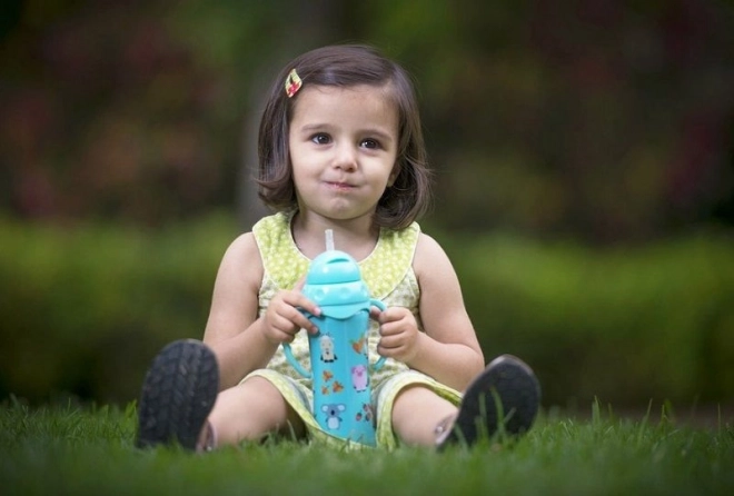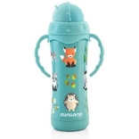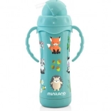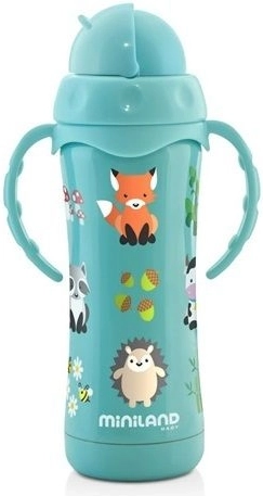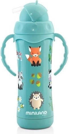 - Élénk színek és vidám figurák: Türkiz dizájn palack illusztrált állatokkal, amely minden gyermeket lenyűgöz.