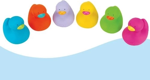 A készlet 6 színes kacsát tartalmaz.