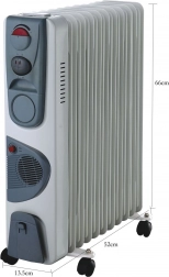 A NIKURA 11 bordás olajos elektromos fűtőtest nagyszerű megoldás otthonok és vállalkozások helyiségeinek fűtésére. Akár 25 m8 területet is fűt, és tökéletes megoldás központi fűtés meghibásodása esetén. Az olajtartalomnak és a legfeljebb 2900 W teljesítménynek köszönhetően állandó meleget biztosít.