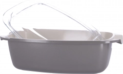 A átlátszó üvegfedő lehetővé teszi a sütés ellenőrzését a hő és a nedvesség elvesztése nélkül. Tartós felépítésének köszönhetően a tepsi alkalmas sütőbe, kiváló hővezető képességgel bír, és sokáig megtartja az ételek hőmérsékletét. Elegáns krémszürke kivitele bármely konyhába illik.