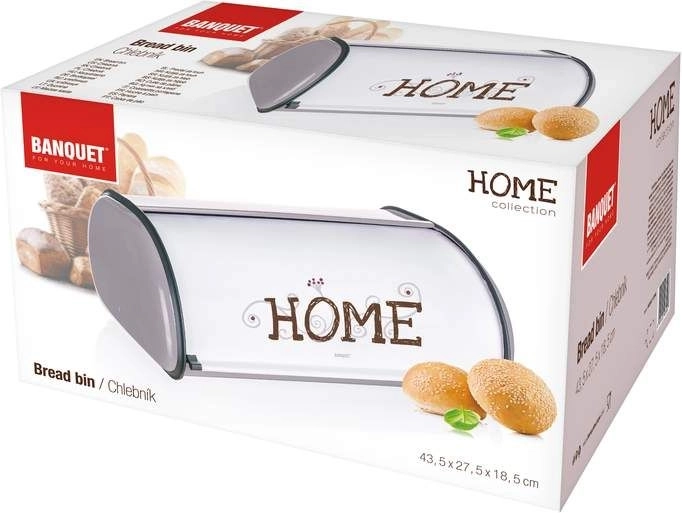 A stílusos HOME kenyértartó minőségi acélból hosszabb ideig frissen és védetten tartja péksüteményeit. Tágas méreteinek köszönhetően 43,5 × 27,5 × 18,5 cm kényelmesen tárolja a kenyeret, zsemlét és bagettet is. A tartós acél szerkezet 0,30 mm lemezvastagsággal hosszú élettartamot és egyszerű karbantartást biztosít.