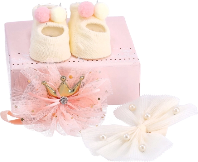 A Little Princess 3 az 1-ben ajándék szettel a legszebb dolgot nyújthatod szeretteidnek, amit csak egy baba kaphat. A szett két csodálatos fejpántot tartalmaz dekoratív elemekkel és harmonizáló cipőcskékkel. A fejpántok nemcsak gyönyörűek, hanem rendkívül kényelmesek és praktikusak a baba számára. Kivételesen rugalmas és puha gumiból készültek, amely nem okoz nyomást a baba fejére. Ez a kedves újszülött szett dekoratív ajándékdobozban van csomagolva, ami készen áll az ajándékozásra.