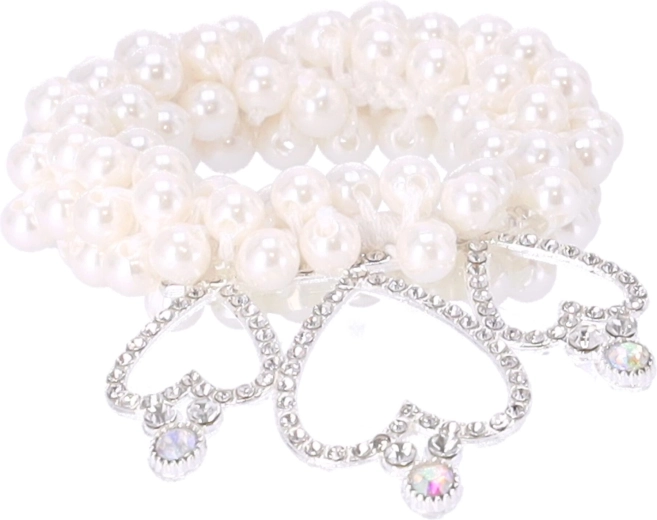 Ez a dekoratív hajgumi gyöngyökkel és csillogó szívecskékkel/koronával tökéletes választás kis hercegnőknek és nagylányoknak, akik ragyogóvá szeretnék tenni frizurájukat. Kellemes anyagának köszönhetően kényelmes viselet, nem tépi a hajat, és egész nap tartja a frizura formáját.