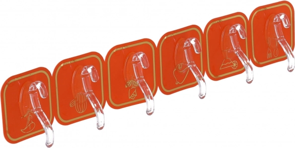 Teremtsen rendet pillanatok alatt. Ezeket az öntapadós akasztókat elég tiszta, sima felületre felragasztani, és azonnal használhatók. A átlátszó akasztó és a narancssárga alap kombinációja stílusosan mutat a konyhában, fürdőszobában és előszobában is.