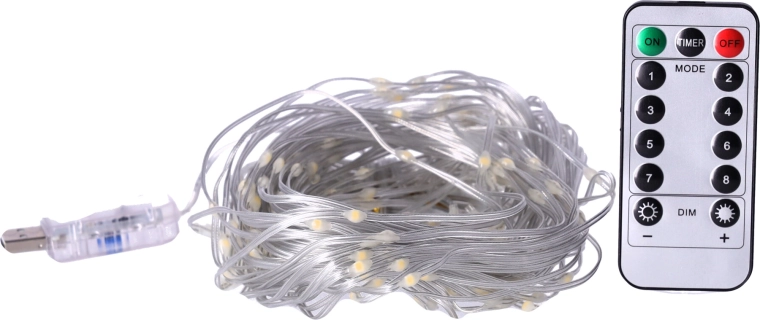 - készlet hossza: 150 db: A készlet programozóval rendelkezik, amely lehetővé teszi a különböző világítási módok közötti könnyű váltást: