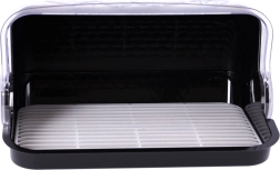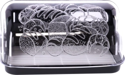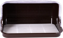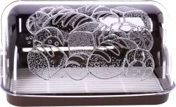 A modern kenyértartó megvédi a tartalmát a kiszáradástól és a penészedéstől, emellett rendkívül modern és elegáns dísz. A tágas kenyértartó elfér benne kenyér és zsemle, édes kelt kiflik, croissantok stb. Kiváló minőségű műanyagból készült, átlátszó, kenyérmintás fedéllel. Speciális rácsozatot kapott, amely a morzsákat az alján tartja, és megakadályozza, hogy a kenyérhez tapadjanak.
