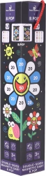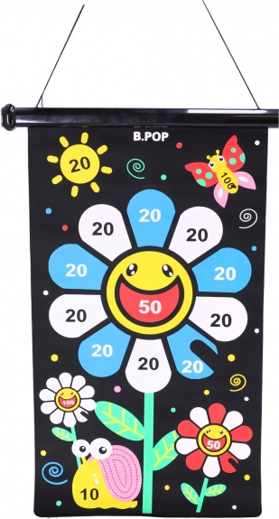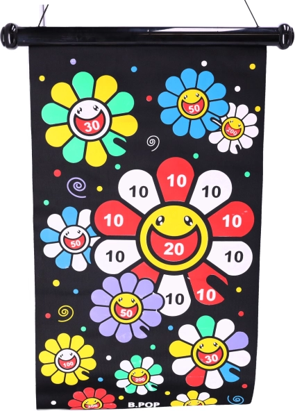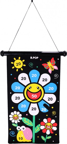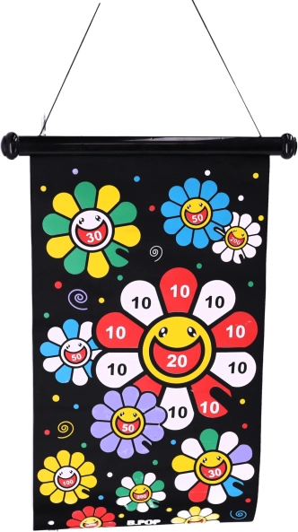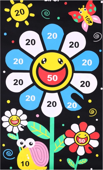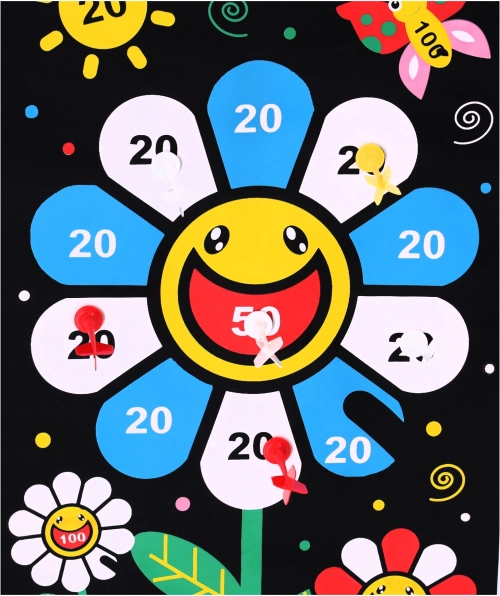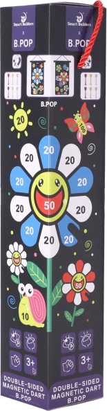 A biztonságos, kétoldalas mágneses nyíl játék rengeteg szórakozást nyújt mind a gyerekeknek, mind a felnőtteknek. A játék lényege, hogy pontosan célozzunk a táblán jelölt pontokra. A készlet 6 mágneses nyilat tartalmaz három színben: fehér, sárga és piros. A fekete textiltábla színes virággal van díszítve, amely segíti a kézügyesség és a koncentráció gyakorlását. A tábla visszagörgetése megkönnyíti annak tárolását és szállítását.