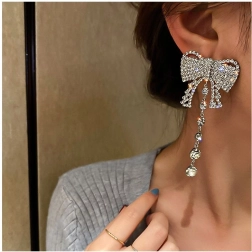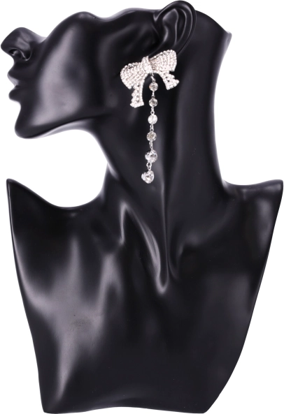 Masni alakú fülbevaló függő kristályokkal, amelyek elegáns és kifinomult megjelenést adnak minden ruhának.