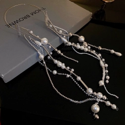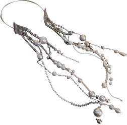 A hajpánt kifinomult megjelenést biztosít a mesterséges gyöngyök és a láncok révén.