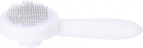 Praktikus kefe kutyáknak és macskáknak, amely hatékonyan eltávolítja a kihullott szőrt és a gubancokat, miközben gyengéden masszírozza a bőrt. Az ergonomikus nyélnek köszönhetően kényelmes a fogása és nem csúszik, a lekerekített fém sörték pedig kíméletesek a bőrhöz. Rendelkezik gyors tisztítógombbal is, így a szőrt egyetlen nyomással könnyedén eltávolíthatja a keféről. Alkalmas rövid és hosszú szőrű kedvencekhez, a mindennapi egészséges, fényes bunda ápolásához.