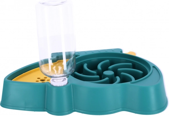 A praktikus vízadagolóval ellátott tál ideális megoldás olyan gazdik számára, akik akkor is folyamatos hozzáférést szeretnének biztosítani kedvencüknek a friss vízhez, amikor nincsenek otthon. Az alsó rész egy lassító etetőtál, amely segít megelőzni a túl gyors evés okozta emésztési problémákat. Úgy van kialakítva, hogy meghosszabbítsa az étkezés időtartamát. A tál labirintusszerű vájatokkal rendelkezik, amelyek kihívást jelentenek kedvencének. Az elhelyezett falatok mérete határozza meg a nehézségi szintet. Ergonomikus formája megkönnyíti a tisztítást is.