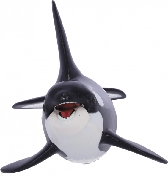 Hű arányok, jellegzetes hátúszó és autentikus fekete–fehér mintázat a maximálisan élethű hatásért játék és kiállítás közben is.