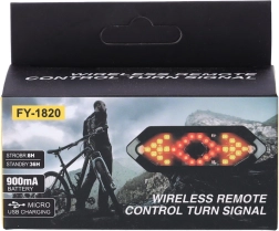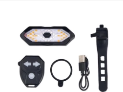 - LED lámpa irányjelzőkkel, vezeték nélküli vezérlő, USB töltőkábel, pánt/tartó, használati útmutató