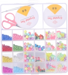 A kreatív gyöngykarkötő- és medálkészítő készlet remek választás a kis művészek és ékszerkedvelők számára. A készlet finom, 2 mm-es gyöngyöket tartalmaz akár 24 különböző színben, szilikon gumit, ollót és fűzőtűket. Ez egy olyan eszköz- és anyagkészlet, amely lehetővé teszi a gyerekek számára, hogy kifejezzék kreativitásukat és fejlesszék kézügyességüket.