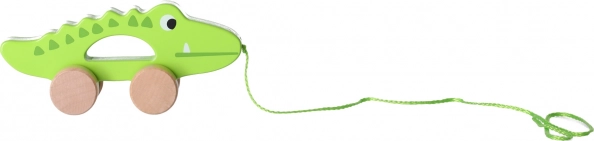 A Tooky Toy húzható krokodilja fából készült. Egy aranyos krokodil látható rajta, amely a zsinórral húzva a gyermek után gurul. A zsinór különlegesen a gyerekek számára lett tervezve, kellemes és kényelmes tapintású. Stabil és csendes, 4 kerekű kialakítású, valamint egy nyílással rendelkezik, amely megkönnyíti a gyermek számára a krokodil megfogását és tolását. A krokodil ideális játék a járás tanulásához, mivel ösztönzi a mozgást.