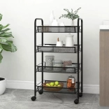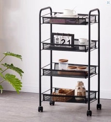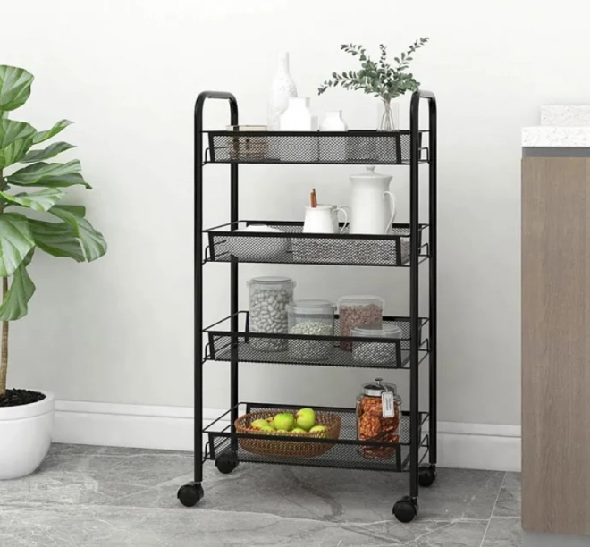 A multifunkcionális állvány ideális tárolóhely maximalizálásához otthonában. Négy tágas polca lehetővé teszi az élelmiszerek, edények és tisztítószerek tárolását a konyhában, vagy a kozmetikai és higiéniai termékek tárolását a fürdőszobában.