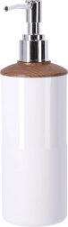 A modern szappanadagoló letisztult, fehér testtel és fa részlettel pontos és takarékos adagolást biztosít a folyékony szappanhoz. Könnyen újratölthető, és remekül illeszkedik a szett többi eleméhez.