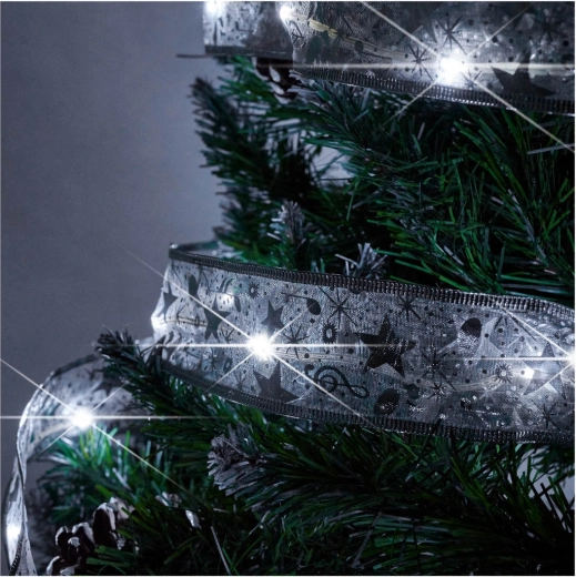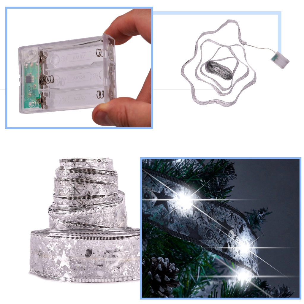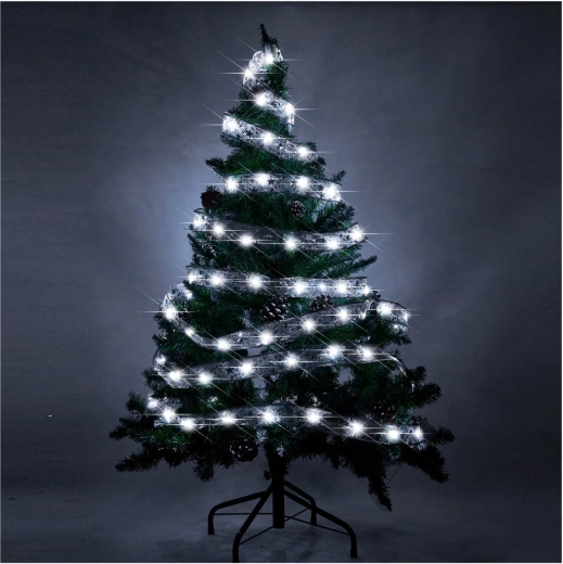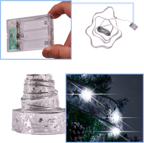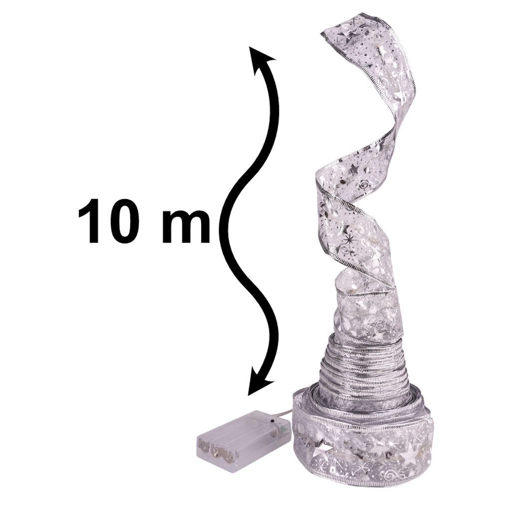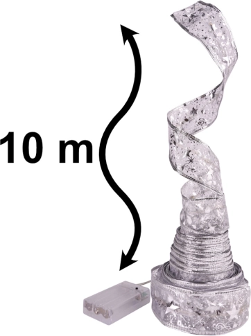 Varázslatos hangulatot teremthet a 10 m hosszú dísz LED szalaggal, amelyen 100 LED található hideg fehér fénnyel. A elemes táplálásnak köszönhetően konnektor nélkül bárhová elhelyezhető, a 8 világítási mód ünnepi hangulatot varázsol, a rugalmas kivitel pedig megkönnyíti a formázást a fán, koszorúkon vagy dekorációkon.