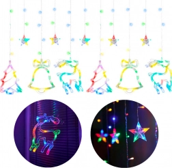 Karácsonyi LED fényfüggöny lenyűgöző, többszínű világítást kínál, amely ideális erkélyek és ablakok dekorálására, és optimális teljesítményt nyújt 138 LED diódájával.