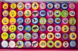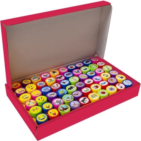 A 60 bélyegző mindegyike egyedi mintát kínál, a vidám állatoktól a szórakoztató hangulatjelekig, amelyeket a gyerekek imádnak.