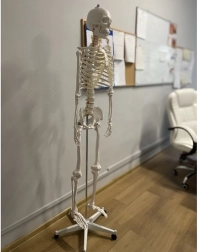 Az 180 cm-es emberi csontváz anatómiai modell ideális eszköz az emberi test tanulmányozásához és oktatásához. Készül strapabíró PVC műanyagból, stabilan áll alumínium kerekes állványon, ami megkönnyíti elhelyezését az igények szerint.