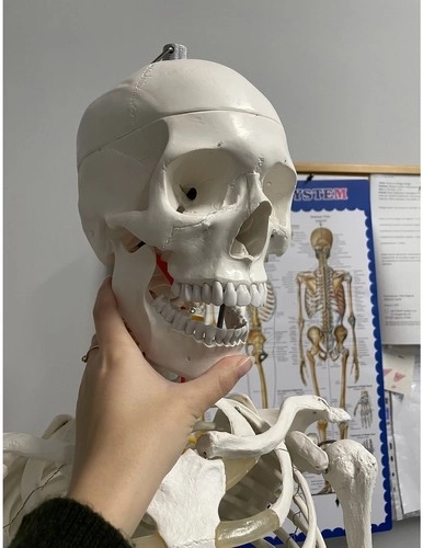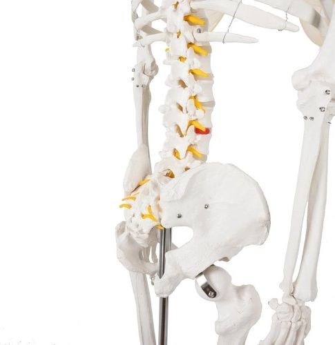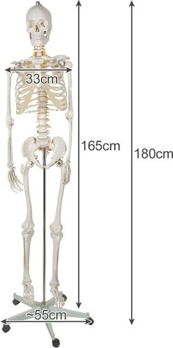 A csontváz modell önmagában 165 cm, az állvánnyal pedig 180 cm, ami felnőtt ember valósághű méretének felel meg.