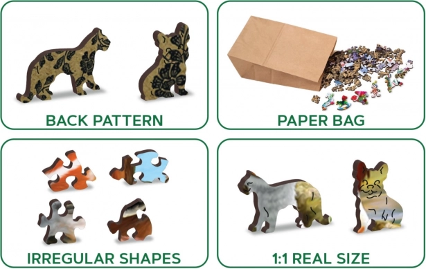 A szett kiváló választás családi estékhez és a kreatív, illetve logikus gondolkodás fejlesztéséhez. A 200 elem mindegyike egyedi, ezért a kirakás nagyobb kihívás, mint a hagyományos puzzlek esetében. A kész kép, 254 × 182 mm méretben, eredeti dekorációként is szolgálhat. A WOODEN CITY márka ügyel a környezetvédelemre – műanyagmentes csomagolás.