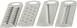 Négy cserélhető tartozék, különböző szeletelési és reszelési lehetőségekhez. Különböző zöldségek és gyümölcsök számára testreszabható.